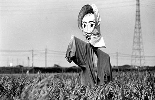 (意見)傘、稲架、案山子の背景の空など、焼きの調子を整える、あと0,5くらいコントラストをあげたらどうか。案山子の写真の背景に電線が入っているがこれは無いほうがよくないか? ウーンでもこれは近郊農村であるし見沼の風景のなかの一枚と見れば、むしろあったほうが現代性が出てよいのではないか。