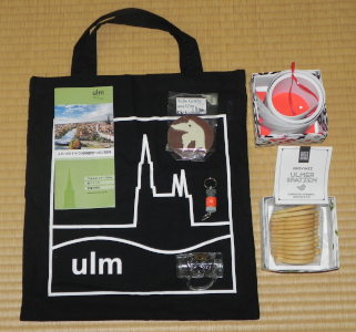 ウルム大聖堂とドナウ川を表す曲線でしょう。