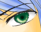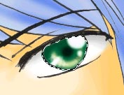 またまた更にその上に「瞳_ハイライト」レイヤーを作成し、ボケの少ないブラシでハイライトを加える。 |