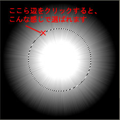 そのまま新規レイヤーを一番上に作成し、白で[編集]-[塗りつぶし]を実行します。 [選択範囲]-[選択範囲の解除]で選択範囲を解除します。