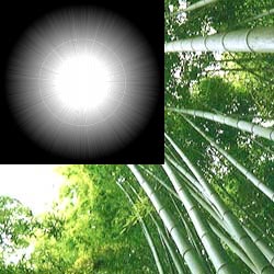 それから……、発光テクスチャに[フィルタ]-[透明度]-[暗さに応じて透明化]を実行して貼り付けるのもいいかも…。