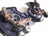 | さて、後輪の左右で同様な作業を繰り返し、標準のバックプレートがアクスルハウジングごと車両から取り外せたら、ここから先のハブベアリング抜き取り