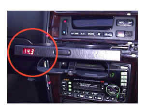 です。これは【図2】に示されるように、シガーライターから電源を取り、背面に12Vの3連ソケット、正面にデジタル式の電圧計を備えたものです。