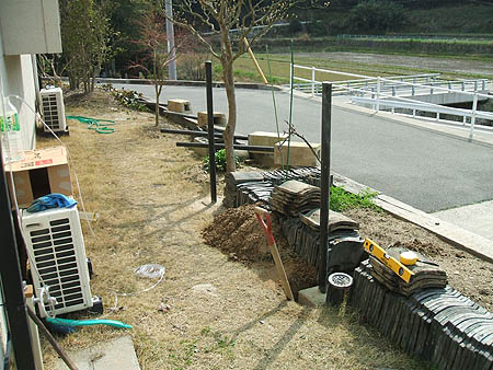 古い家にあったフェンスのポールの使い回しであるが、既に基礎に固定されているのがいいようで困る。