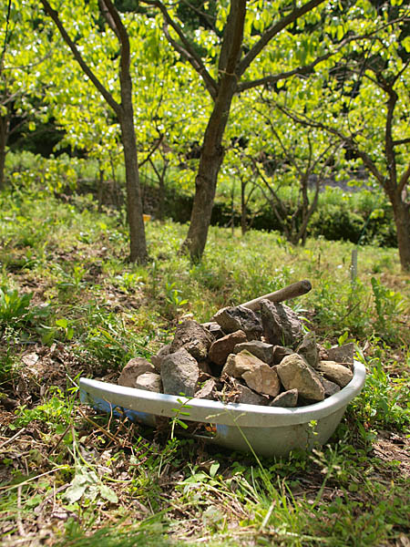 楽しく草刈りをするためには、石も拾います。(2012/5/12)