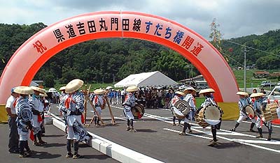 県道吉田丸門田線すだち橋の開通式を迎えた。