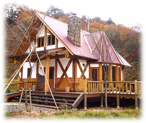ここのログハウスはP&B(ポスト&ビーム工法)で建てられたお洒落なもので、最近このP&Bに興味津々なのである。