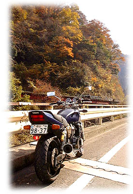 ガソリン補給のついでにタイヤの空気圧をみてもらうと、規定値より随分減っていた。案の定、フニャフニャだった足回りは、午前中にやったチェーン調整も含め、これで随分改善され悪いなりにも快調である。