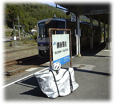 570円払って備後落合で列車を降り、自転車を新品の六角レンチで組立て、さあ出発。