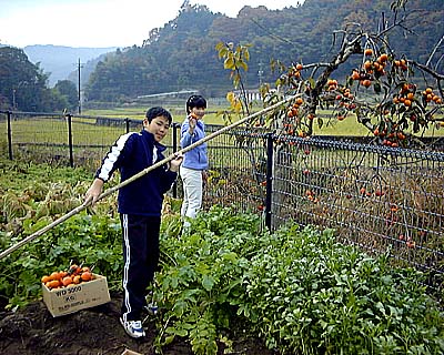 この前は芋掘りをし、今日は庭の富裕柿の取り入れを子供と一緒にやりました。