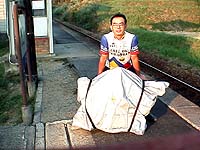 実はここからが今日の楽しみなのである。そう、輪行である。前後輪をはずし、サドルを下げて、ちょっと突き出たDHバーを回転させて、輪行バッグに納める。難なく自転車は姿を消し、ちょっと派手なサイクルジャージを着たレイルトラベラーに変身。川本から粟屋まで1280円+270円で15時46分発のディーゼル1両編成の列車に乗り、今度は車窓から江の川を楽しみながら帰路につく。