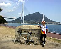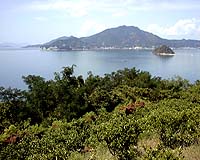 9月6日(水) 残っている夏休みを利用して、愛媛県大三島の一周サイクリングに出掛けた。 忠海までワゴン車に自転車を突っ込んで、410円払ってフェリーで大三島の盛港へ10時20分着。疲れた後半に楽な市街地を走る予定で、島を左周りにペダルを漕ぎ出す。 海水浴客の去った誰もいない静かな海と平行して、島々を眺めながら快適なクルージングと思いきや、すぐさま峠越えが始まる。峠といっても岬をひとつ山越えする程度のもので、ナイトランで鍛えた脚はまだまだ快調に登っていく。 昨年走った大崎上島を対岸に望みながら、島の西部を通過して南部へと進んでいく。沿道には様々な柑橘類が出荷を前にたわわになっている。南部の道は海岸から離れ、山の中腹をアップ・ダウンを繰り返しながら進む非常にハードなコースである。下りになりトップギアに入れたかと思えば、また登りが始まりすぐローギアにシフトダウン。 | ![]() |