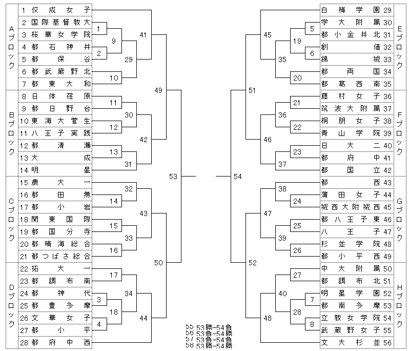 女子 優勝:文化女子大学附属杉並高等学校 準優勝:佼成学園女子高等学校 3位:白梅学園高等学校 4位:都立府中西高等学校