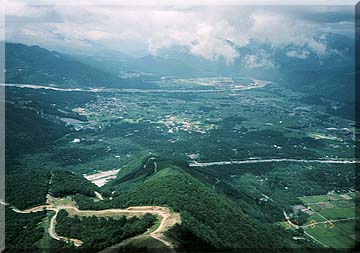飯森尾根の上空から、スキー場であることがよく解ります。