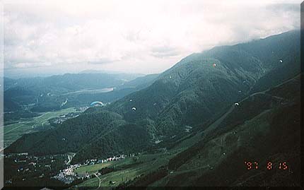 木崎湖を望む。もっと高度が上がれば青木湖や松本市街まで見渡せます。