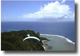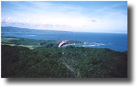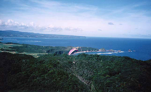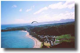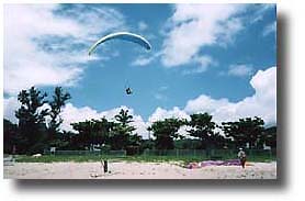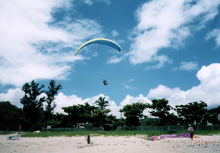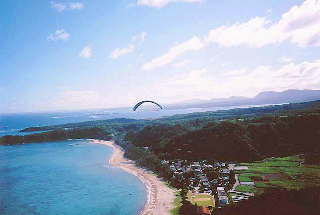 ランディングを望む。 手前にはきれいな小学校の校庭も見える。 飛んでいるのはモン塚。 |