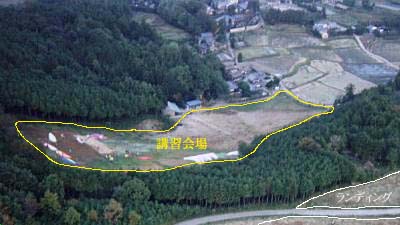 真ん中の黄色で囲んである部分が左・パラランディング、右・講習会場。