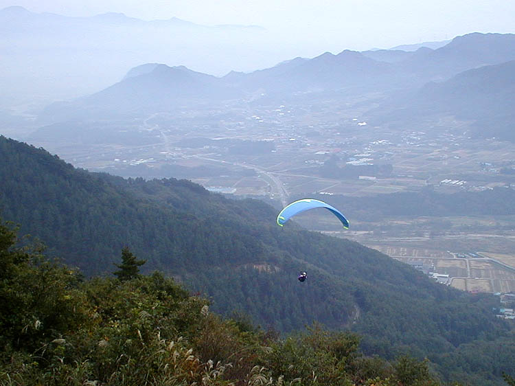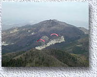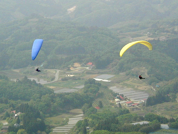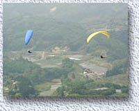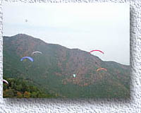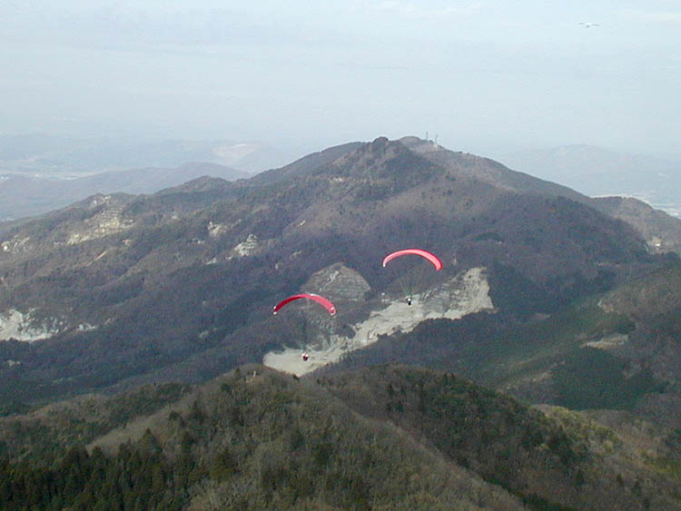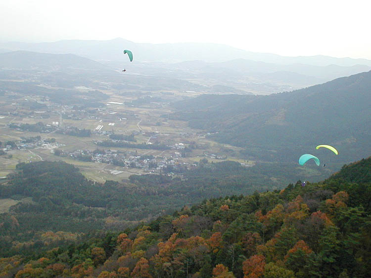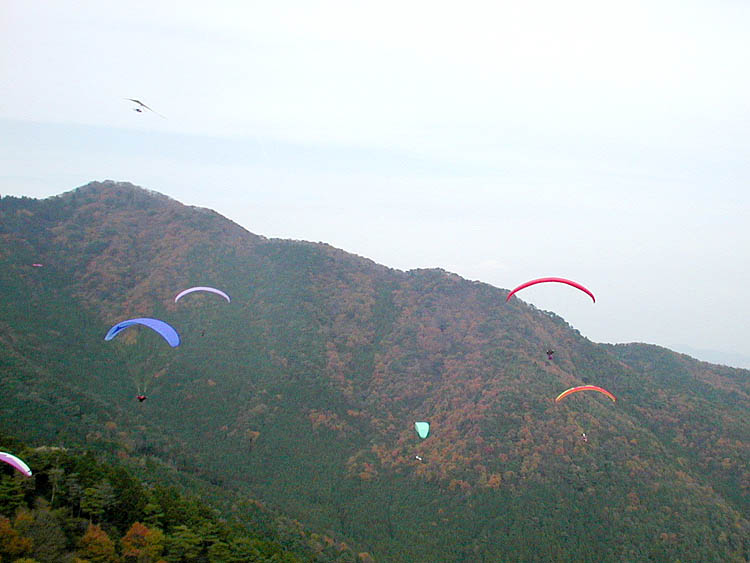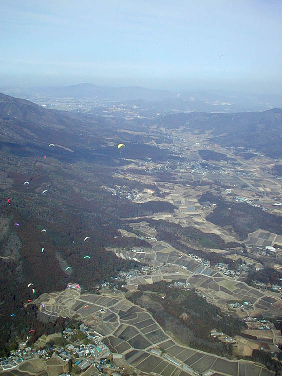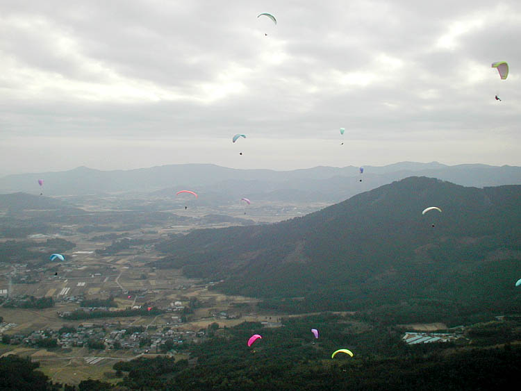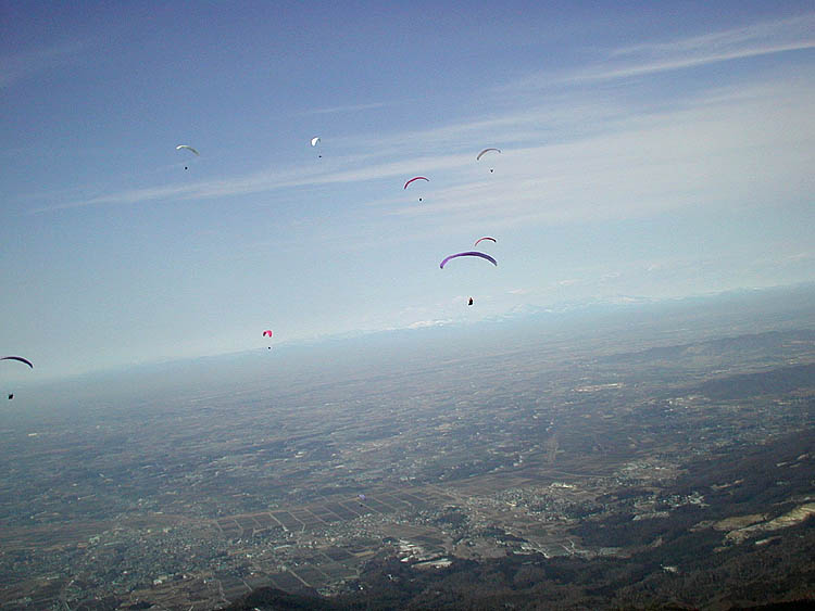 2001年の初飛びの画像。 足尾は日本で飛んでるパラ・ハングの殆どの機体 と遭遇することが出来る(^^ゞ 01.01.07.