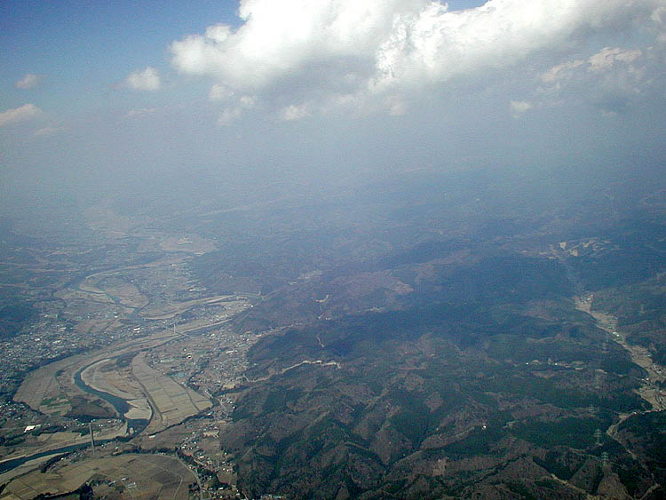 那珂川にそって北上し飛んでいく。 あまり飛べない地域の上空は最高の気分! 下の街は栃木県烏山町 01.04.15.