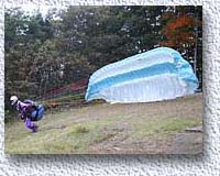羽山のF1大会にて、ダミーが飛ぶ。 2001年からF1に参戦することにしました。 降ろすところが少ないエリアです、羽山は(^^ゞ 01.05.19.