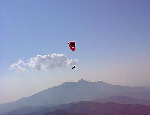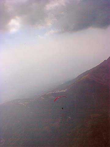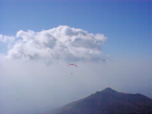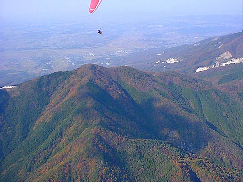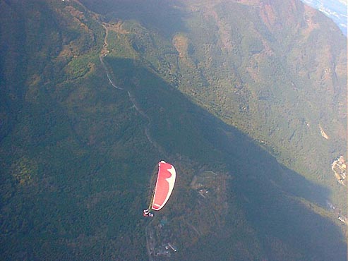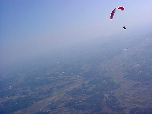 | 今回のBestShotに登場するパラグライダーは、全てマゾ関口氏操るオメガ4です。 私とは色違いのグライダーです。 最近体重が重くなって来たせいか?少し浮きが悪いとのことでした(^^ゞ |