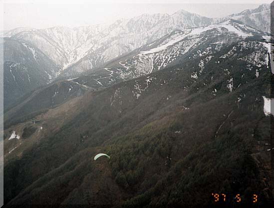 飯森尾根上空から五竜遠見スキー場全体を望む。