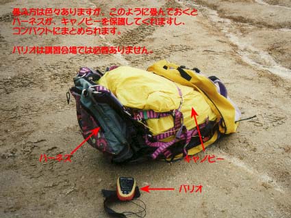 畳み方は、色々ありますが、ハーネスにキャノピーを抱かせるようにするとコンパクトに収納できます。