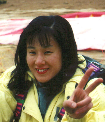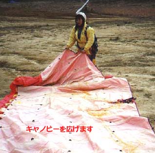 ザックから取り出したハーネスを付け、キャノピーを広げます。