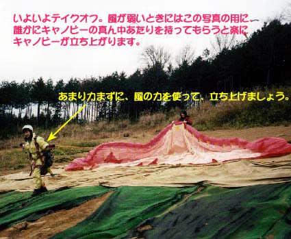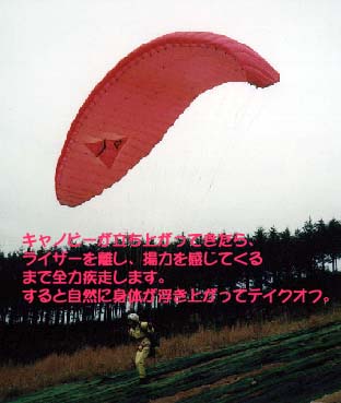 重心を前方にかけるようにして、キャノピーが立ち上がり始めたら、走り始めます。