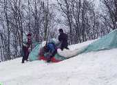 しまう。雪の斜面では、サポートを誰かに頼まないと巧くいかない。