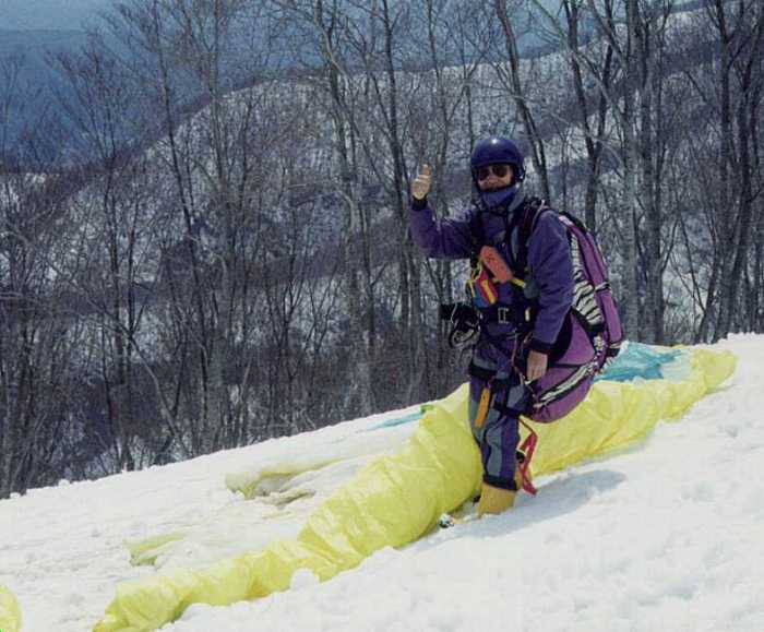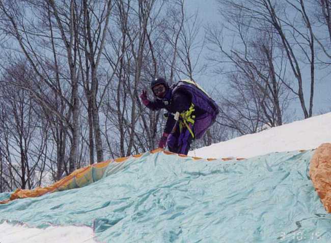 本人。風が悪く足尾で飛べなさそうなので、ハンターマウンテンへ行った