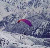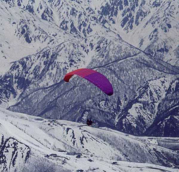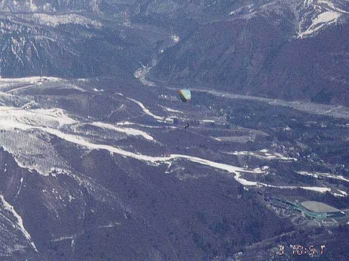 五竜にて。PARARANKA/SUDAJINが飛ぶ。スキーヤーが米粒のように見えるの