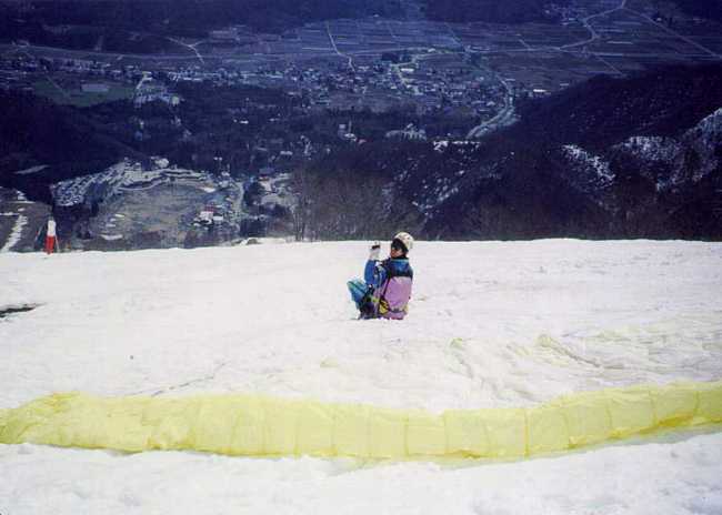 今年の春の五竜は雪が多かった。テイクオフの際にはそれ故とても面白い