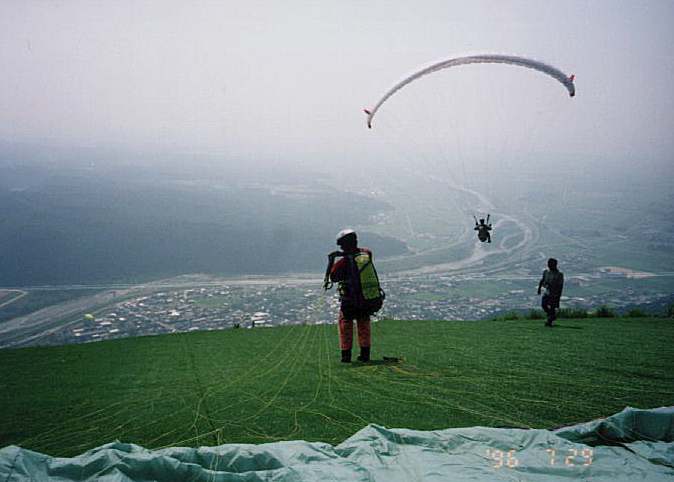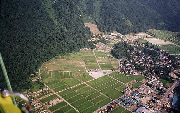 下に見えるむき出しの土の部分が、パラのランディング。奥の緑の部分がハン