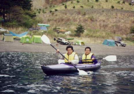 、これは朝霧に行ったときに近くの精進湖にて、カヌーに興じているところ。前