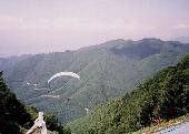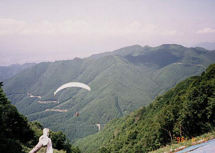 左上に大きく道がカーブしているところが見えるが、そこからテイクオフまで30分弱の登りである。結構いい汗をかきますなぁ。