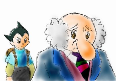 ゲッチューしてきたセル画は公開禁止ー。なのでスケッチに起こしてみました(裁判スケッチか(^-^;)?)。第7話でアトムがお茶の水博士に出生の秘密を尋ねる場面のものでした。他にも夕子さんとかアトムが飛んでるところとかいくつか獲得してきましたが、入荷日の朝一番にマニア&転売屋?がごっそり漁っていってしまったとかで、ちょっと品薄だったっす(´д`;)。