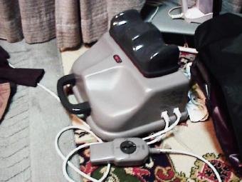 | @母が遂にTV通販にて購入した「うれっこ」でございます(爆)。腰を揺らして有酸素運動、ってなアレです。メーカーによってはさらに腰を乗せる回転台がついているのもあるそうですが、これは足首を乗せるだけです。 有酸素運動、ってのはどうなのかな〜?乗り心地は悪くはないけど、そんなに運動した実感てのは無いです(笑)。意外に段差があり、足が高い位置に保たれるため、足だけ揺らされているという感じです。もっと腰とか上半身が強く揺らさせるといいかな? なんか、もう少し腰にガツン、とゆーか、スタイリースタイリーが欲しくなってきました(笑)。 |