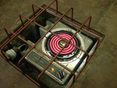 定番のコンロです。麹室を40度近くに上げるために使っています。酒に変な匂いをつけられませんから、石油のストーブなんて使えません。この他に電気のジェットヒーターが1台あります。