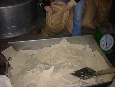 これ、酒を搾った後の酒粕です。これがまたチーズみたいな舌触りでおいしいんですよ。これをつまみにして日本酒呑んだら・・・・止められませんなぁ(^_^;)