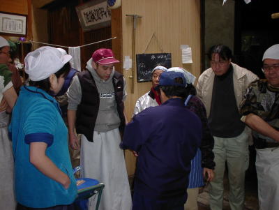 実はここから2日目です。昨晩は呑みすぎた皆さんですが元気に到着しました。朝っぱらから桶を担いで米運びです。ゼェゼェ。