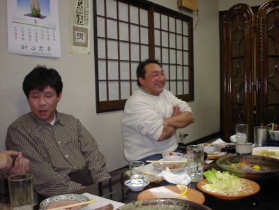 小諸の居酒屋「山野草」で二次会。大雪のため仕込みに参加できなかった馬場氏も緊急参加。
