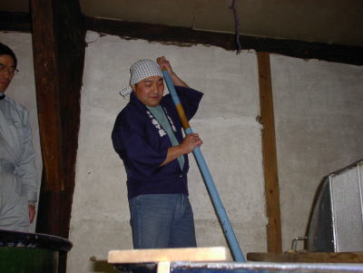 良くテレビなんかで見ますよね。仕込みの唄かなんか歌いながらやりたいところですが、けっこうこれが重労働なんですよ。会長さんもりきみながらやっています。(これはあさまおろしの仕込ではありませんよ。)