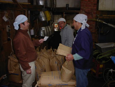 奥から北海道から参加の鈴木さん、東京から参加の岡さん、一番手前が杜氏の和田さんです。