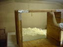 これ、機械で1階から麹室まで運んだ米です。こんな木枠の中にパイプでガンガン詰め込みます。いやぁね、文明の力はすばらしいです。(この米はあさまおろしに使う分ではありません。念のため・・・。)