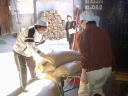 杜氏さんに「一輪車の使い方が下手だなぁ」と言われながら米を洗い場に運びます。30キロ×4袋だから120キロ。いまどき一輪車使う人って少ないんじゃないかなぁ。