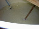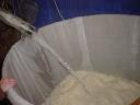 このタンクは、まだまだ発酵が進んでいないので米の形がしっかり残っています。発酵が進んでくると液体になるので櫂入れもやりやすいのですが、この状態だとまだまだ大変。