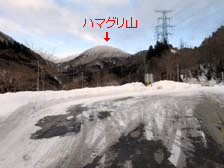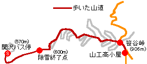 除雪終了点にて 沢沿いの下り