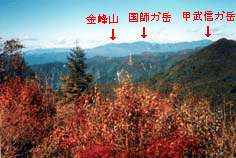 滝子山山頂より 金峰山、国師ガ岳、甲武信ガ岳、黒岳、雁ガ腹摺山、 三頭山、御前山、大岳山、権現山、大室山、檜洞丸、 高川山、今倉山、菰釣山、御正体山、鹿留山、杓子山、 富士山、三ツ峠山、黒岳、釈迦ガ岳、聖岳、赤石岳、 荒川岳、農鳥岳、間ノ岳、北岳が見えました。