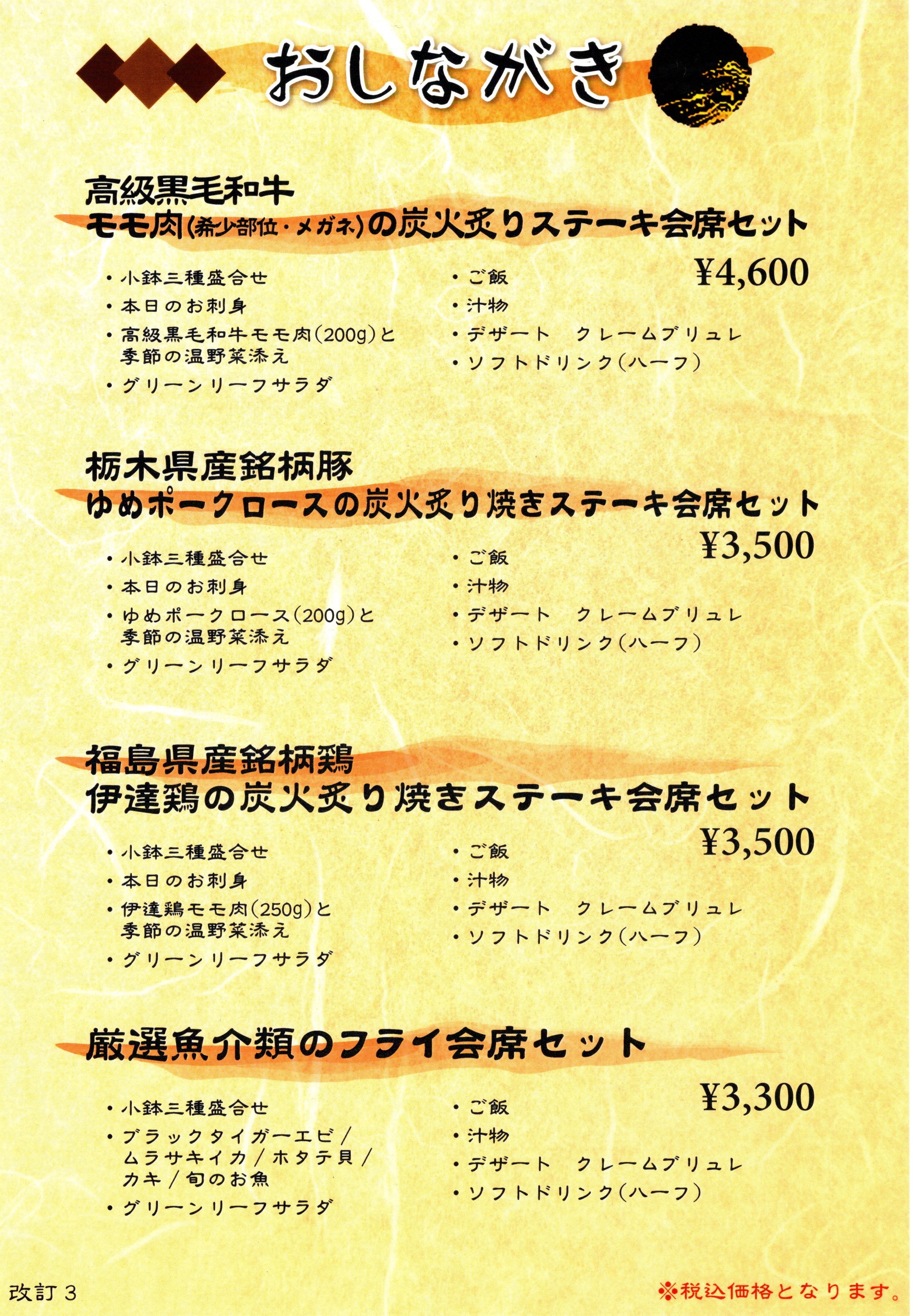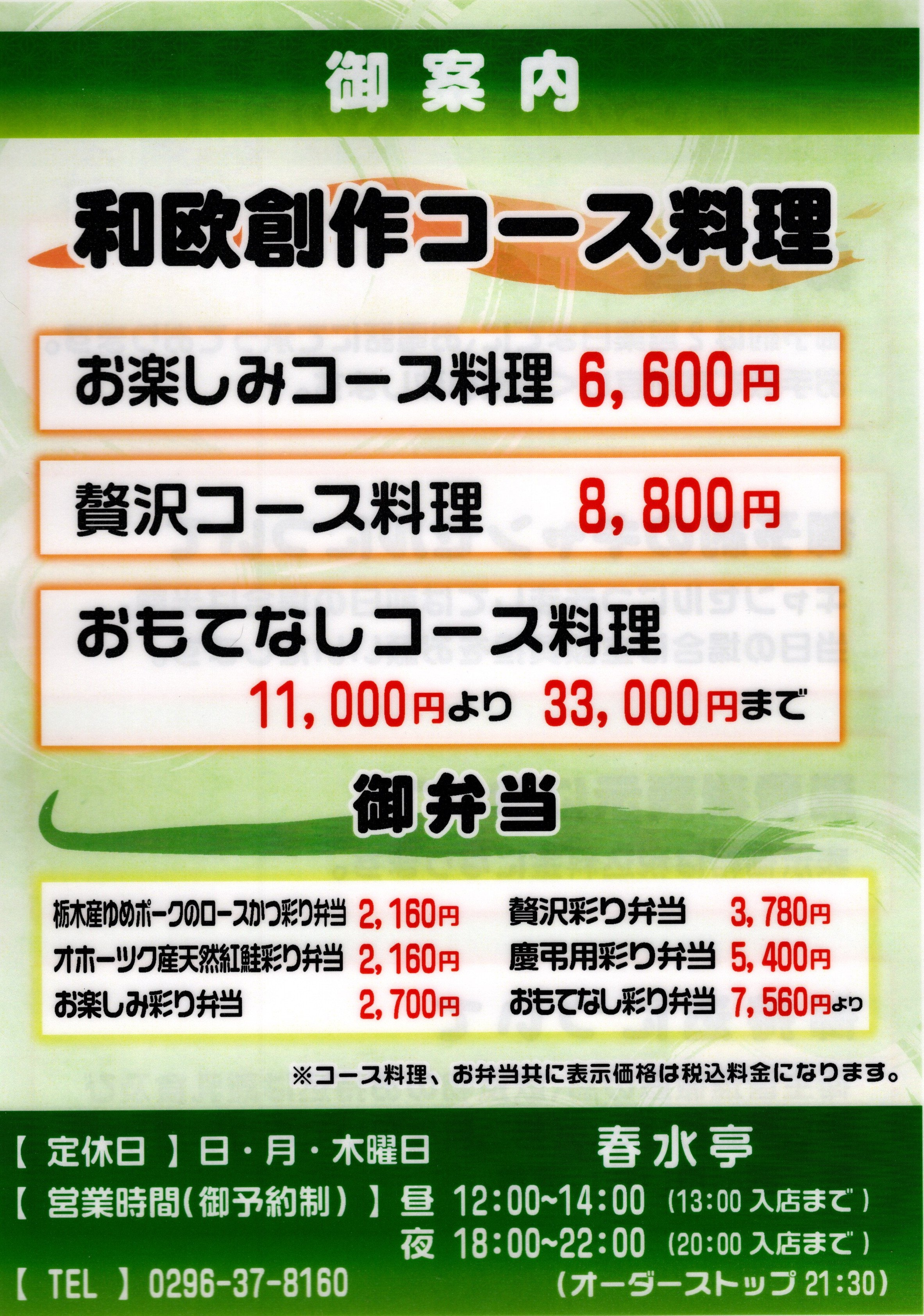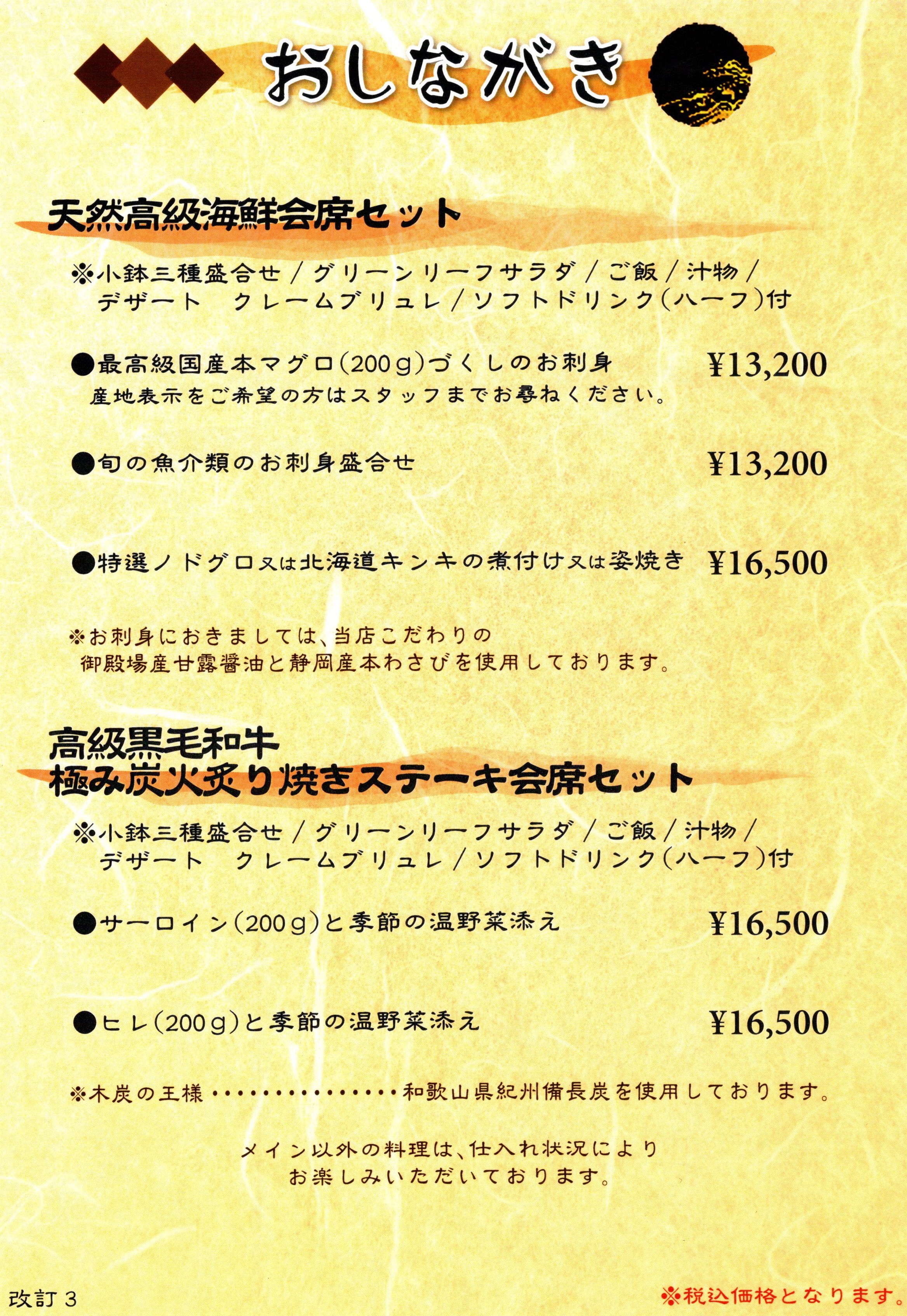 ●おもてなしコース料理 ¥11,000円より、¥33,000円まで